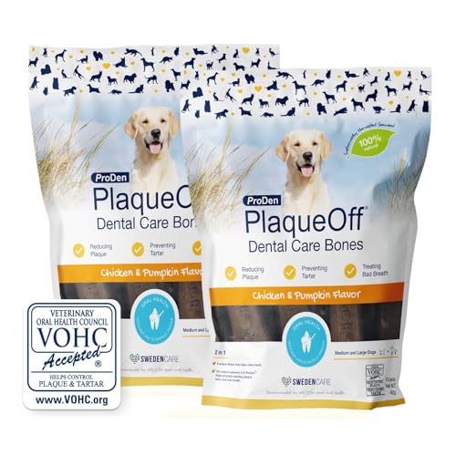 ProDen PlaqueOff 13 Dental Bones for Medium & Large Dogs, Tartar, Plaque & Bad Breath Remover, Improves Overall Oral Health, Pack of 2 (Chicken)