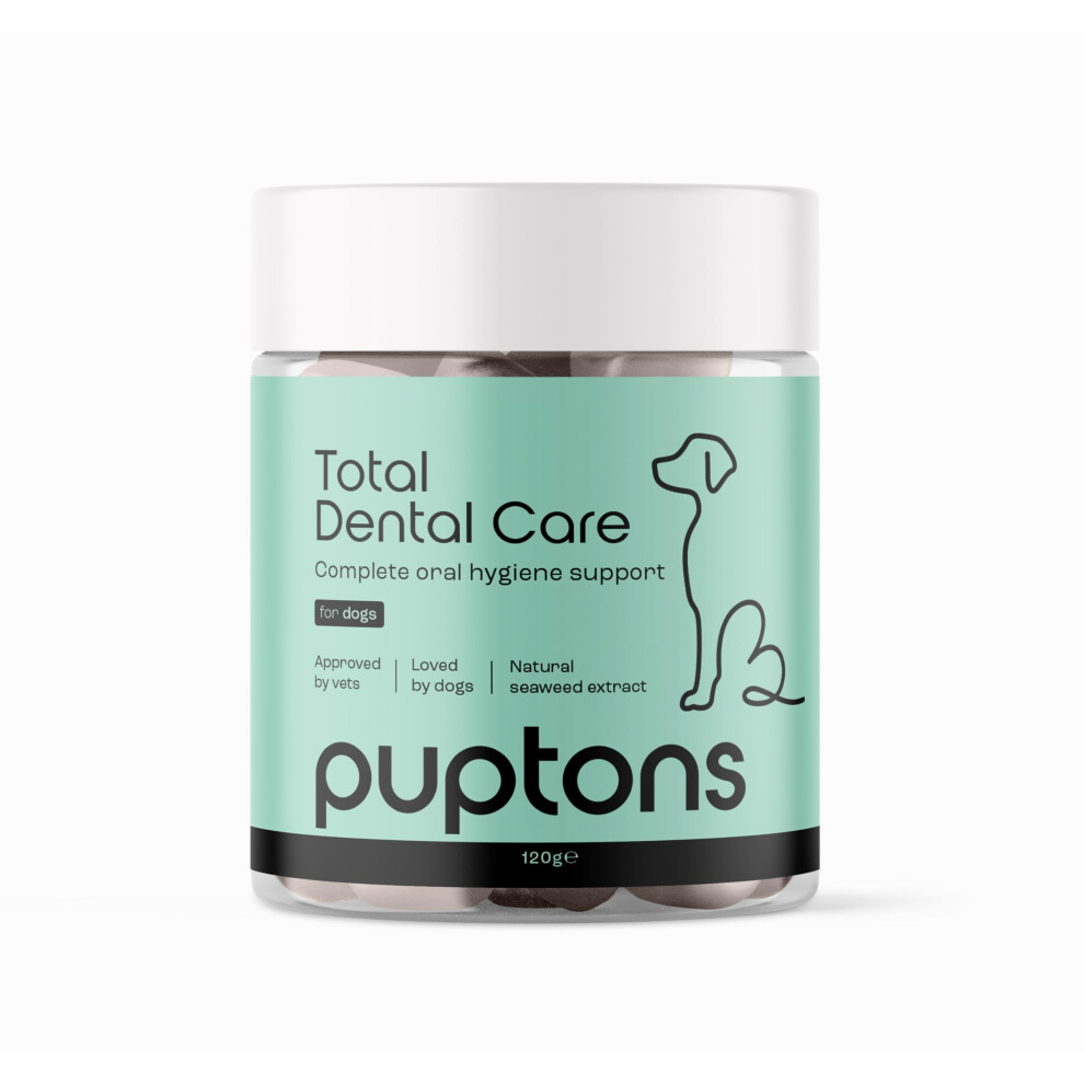 Puptons Total Dental Care for Dogs - Tartar & Plaque Off Powder, No Brushing, Fresh Breath, Seaweed Extract, 60g