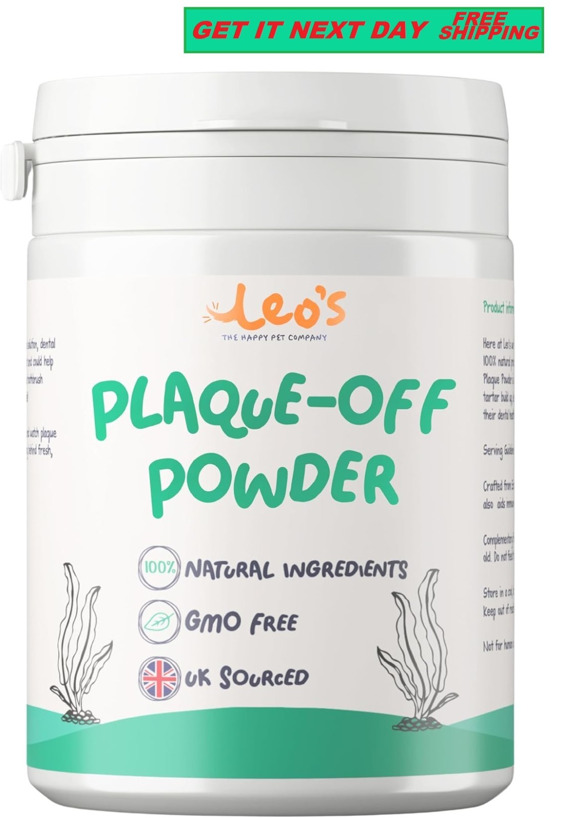 Leo's Plaque Off Powder for Dogs & Cats | 200g | Pet Teeth Cleaning | Cat & Dog Breath Freshener Food Topper | 100% Natural | No Dog Toothbrush or Dog Toothpaste | Plaque Remover for Dogs & Cats
