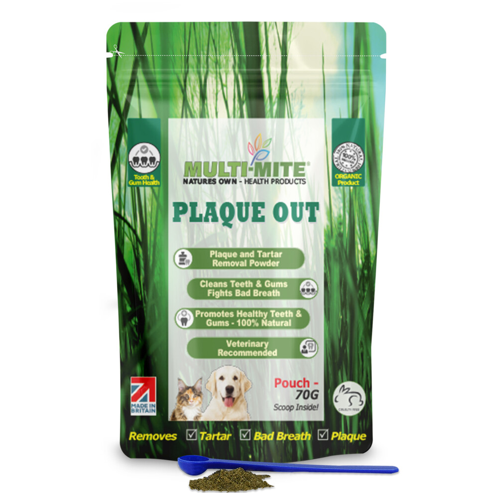 PLAQUE OUT 70G Pouch Tartar Plaque Off Remover, Bad Breath Dogs, Cats