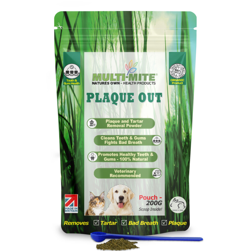 PLAQUE OUT 200G Pouch Tartar Plaque Off Remover, Bad Breath Dogs, Cats