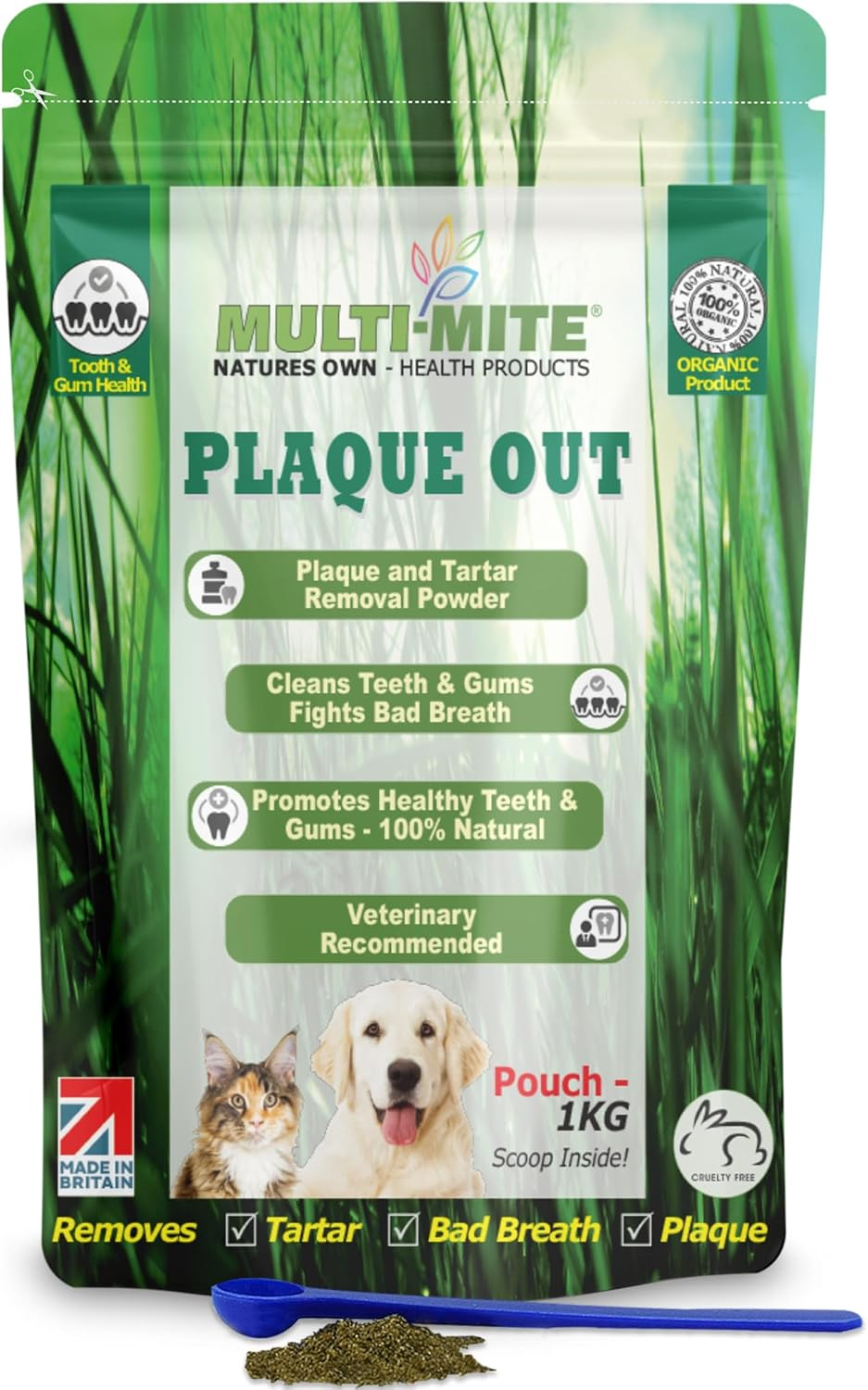 PLAQUE OUT 1KG Pouch Tartar Plaque Off Remover, Bad Breath Dogs, Cats