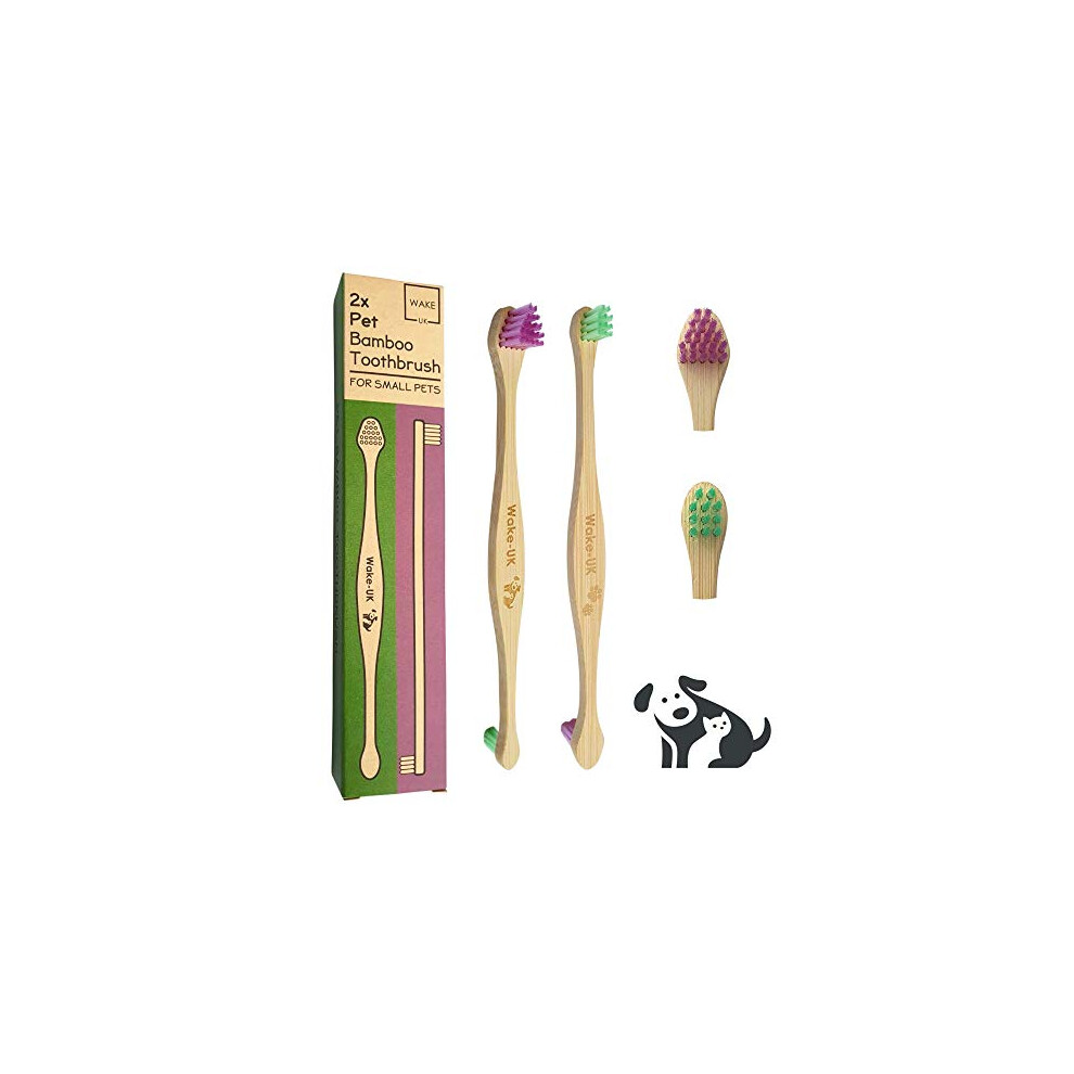 Pet Toothbrush for Dogs Cats & Small Pets, Pack of 2 Double Head Bamboo, Soft Teeth Cleaning Products, Organic Dental Care, Remove Plaque Off, Dog