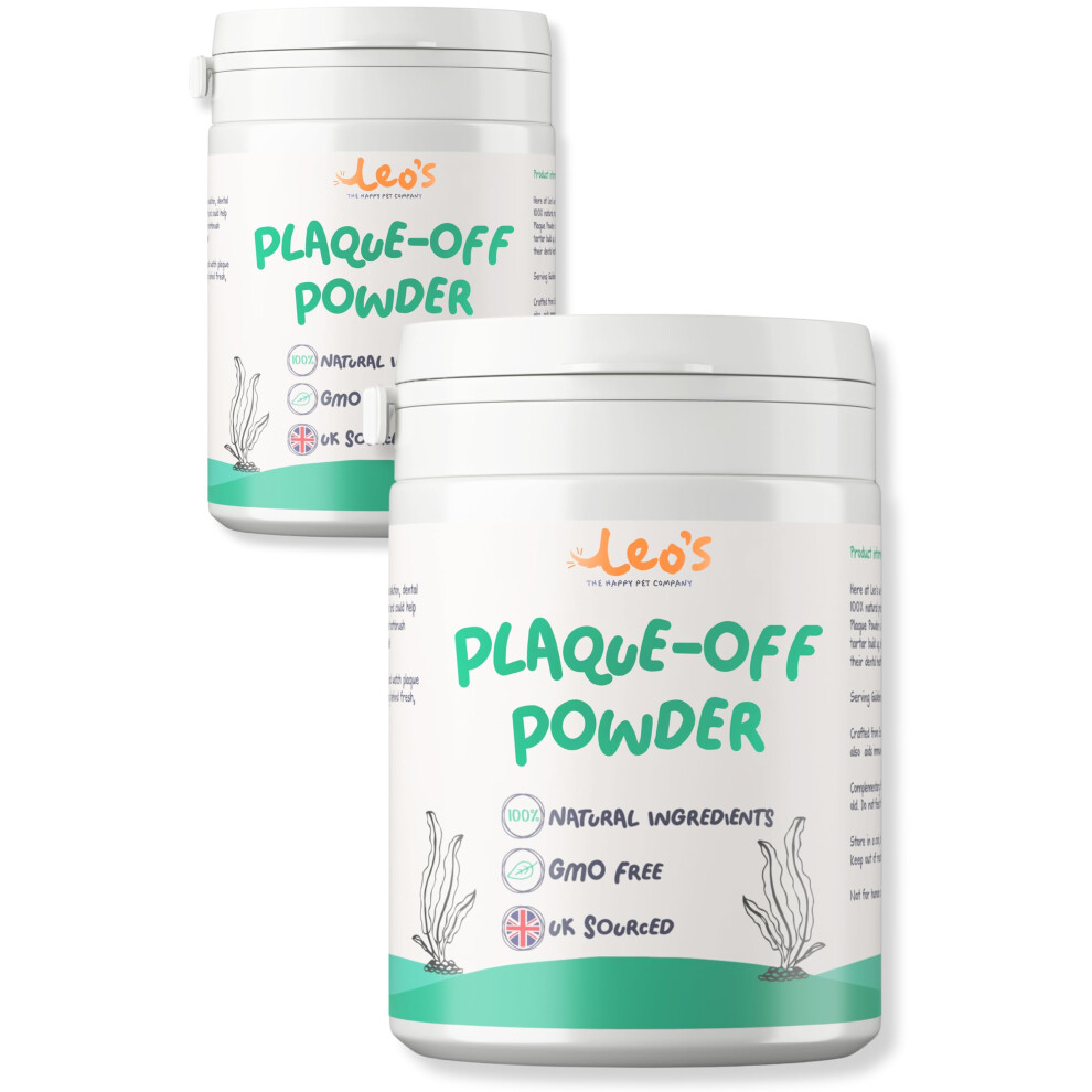 Leo's Plaque Off Powder for Dogs & Cats | 2 x 200g Pet Teeth Cleaning Care & Breath Freshener Dental Products | 100% Natural | No More Dog Toothbrush