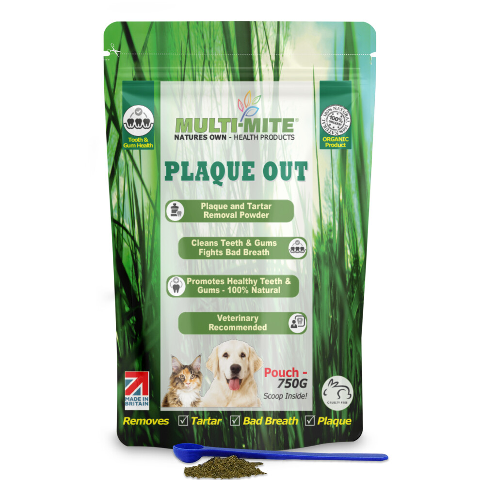 PLAQUE OUT 450G Tartar and Plaque Off Remover, Bad Breath Teeth Gum Care for Dogs, Cats 100% Organic