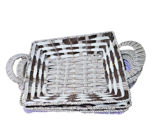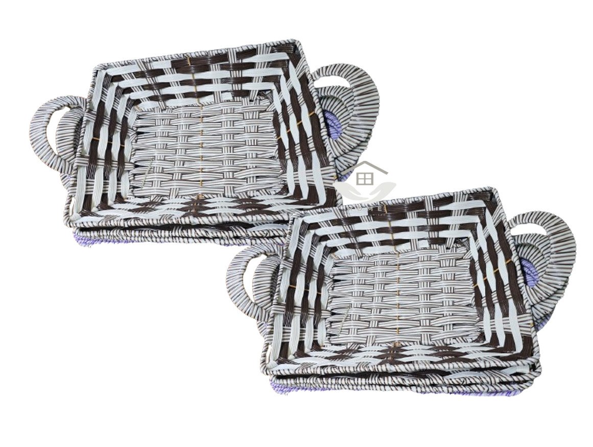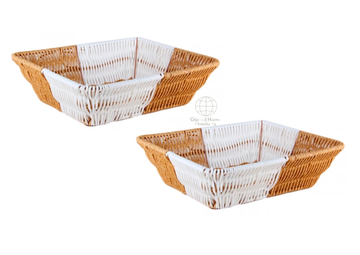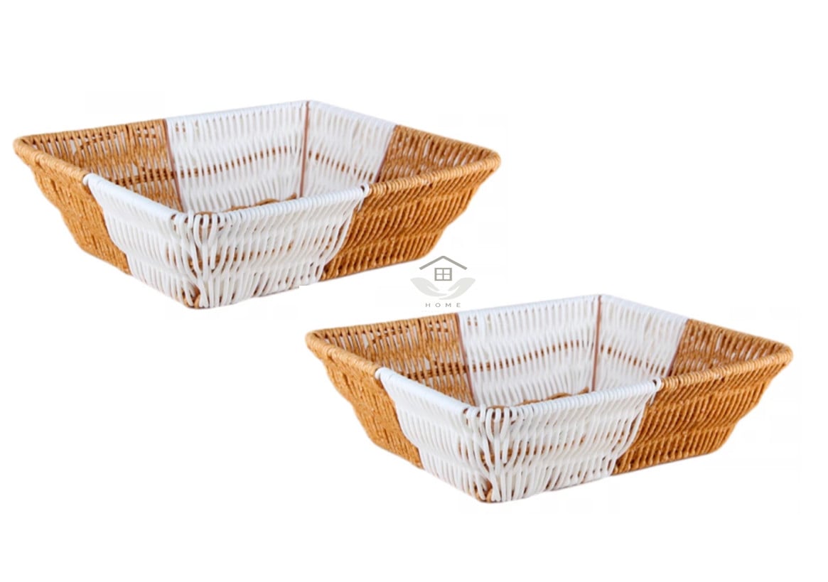 2 xWicker Rattan Bread Basket Plastic Storage Display Hamper Fruit Basket 10x8cm