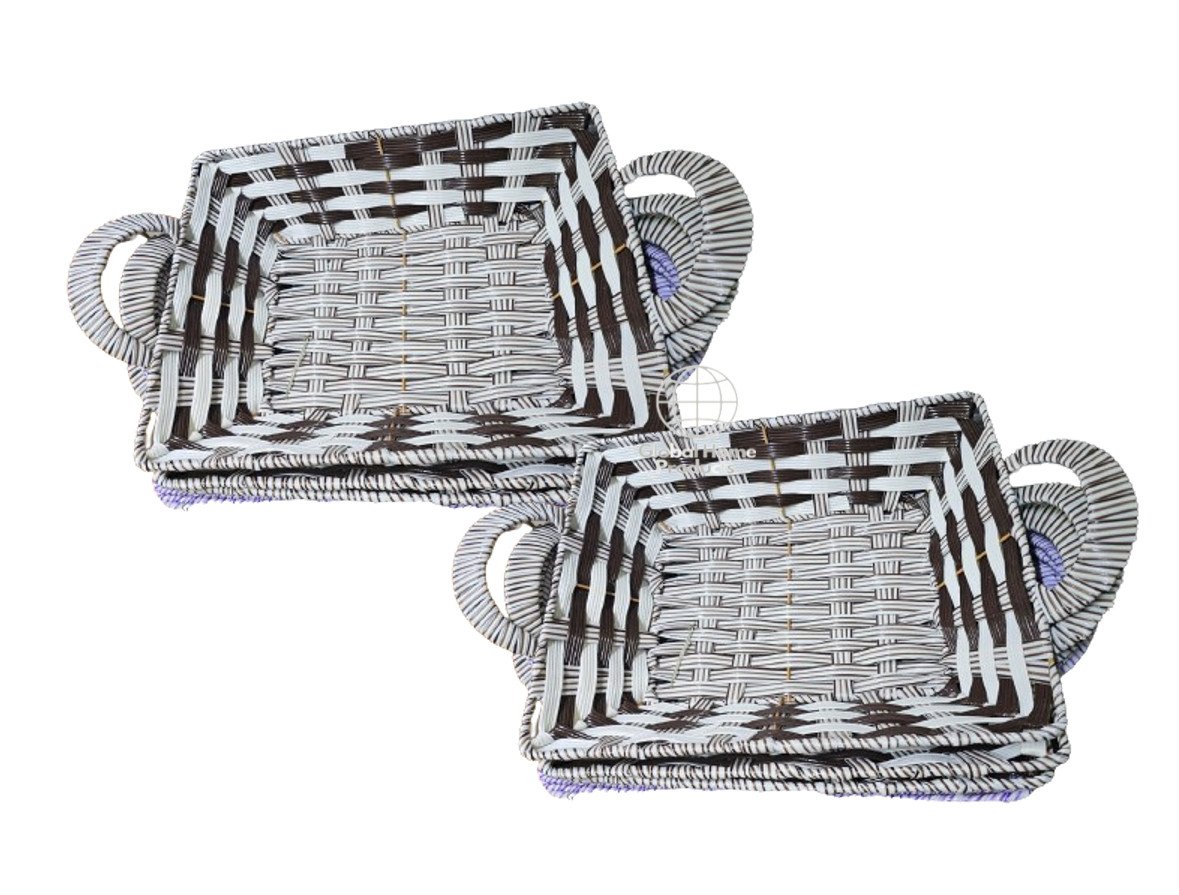 2 xWicker Rattan Bread Basket Plastic Storage Display Hamper Fruit Basket