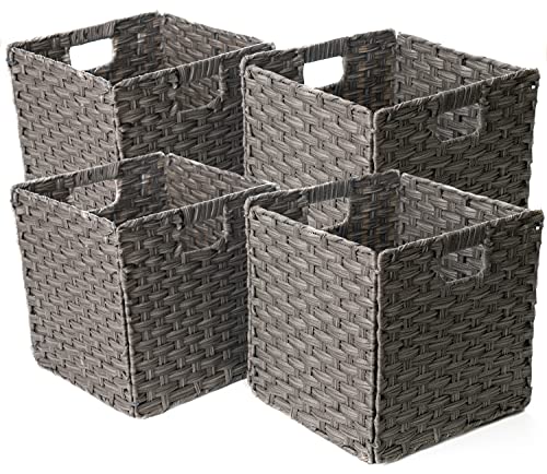 Foldable Synthetic Plastic Wicker Storage Basket with Iron Wire Frame By Blue Ridge Basket Company (Set of 4)