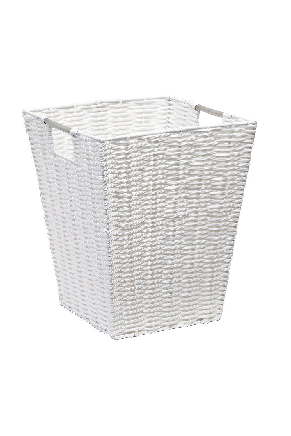 Waste Paper Bin White Resin Plastic Strong Square Basket Storage Ideal For Home, Office, Hotels (White Square)