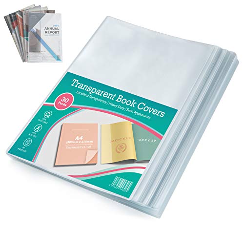 30Pcs A4 Clear Book Cover Thicker Exercise Books Covers Film Transparent Plastic Workbooks Jacket Cover