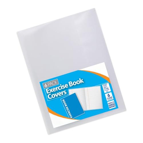 6 Pack 9 X 7 “Clear Exercise Book Covers Strong Plastic Protecting Sleeves Protector Cover Film Transparent Jacket, School Notebook (A5)