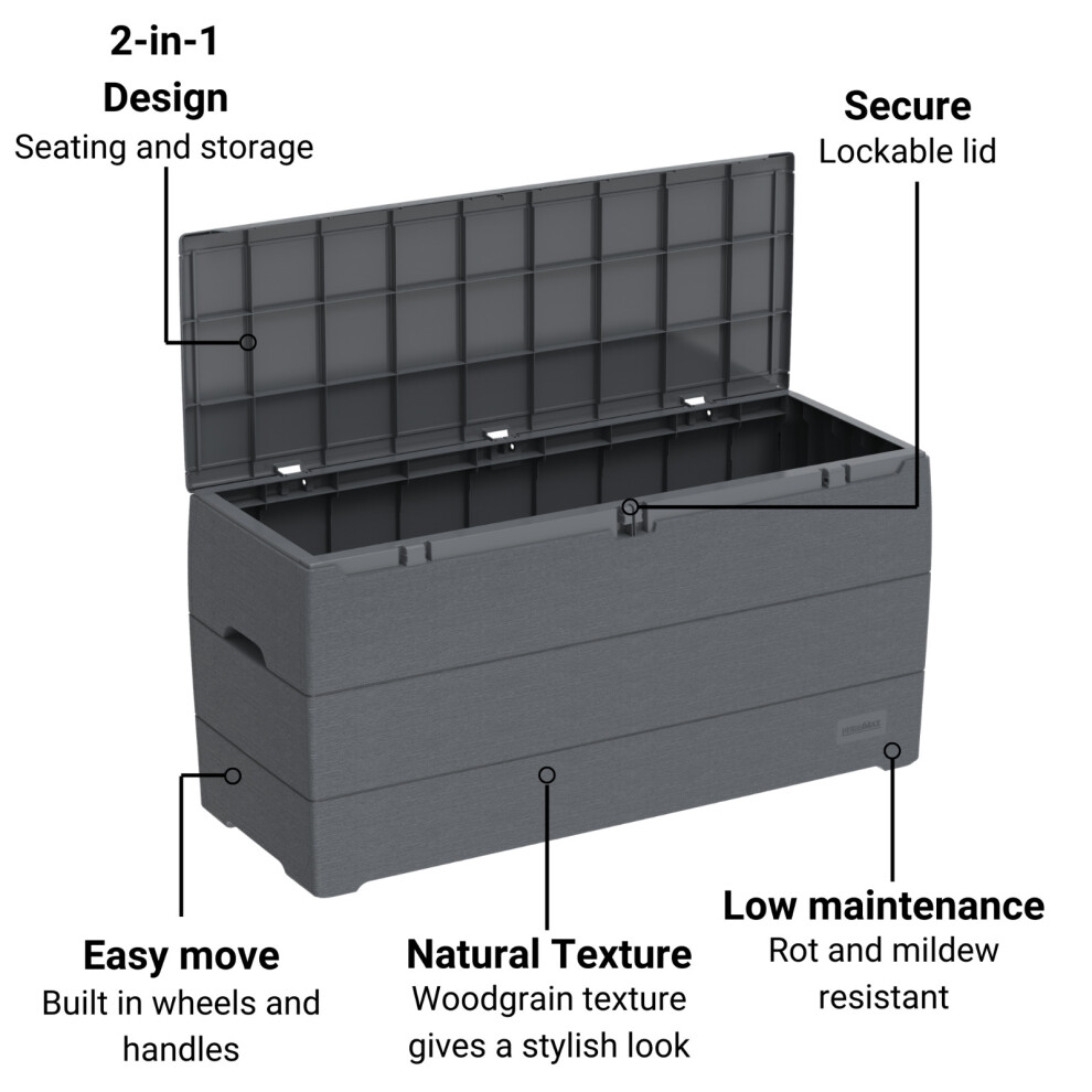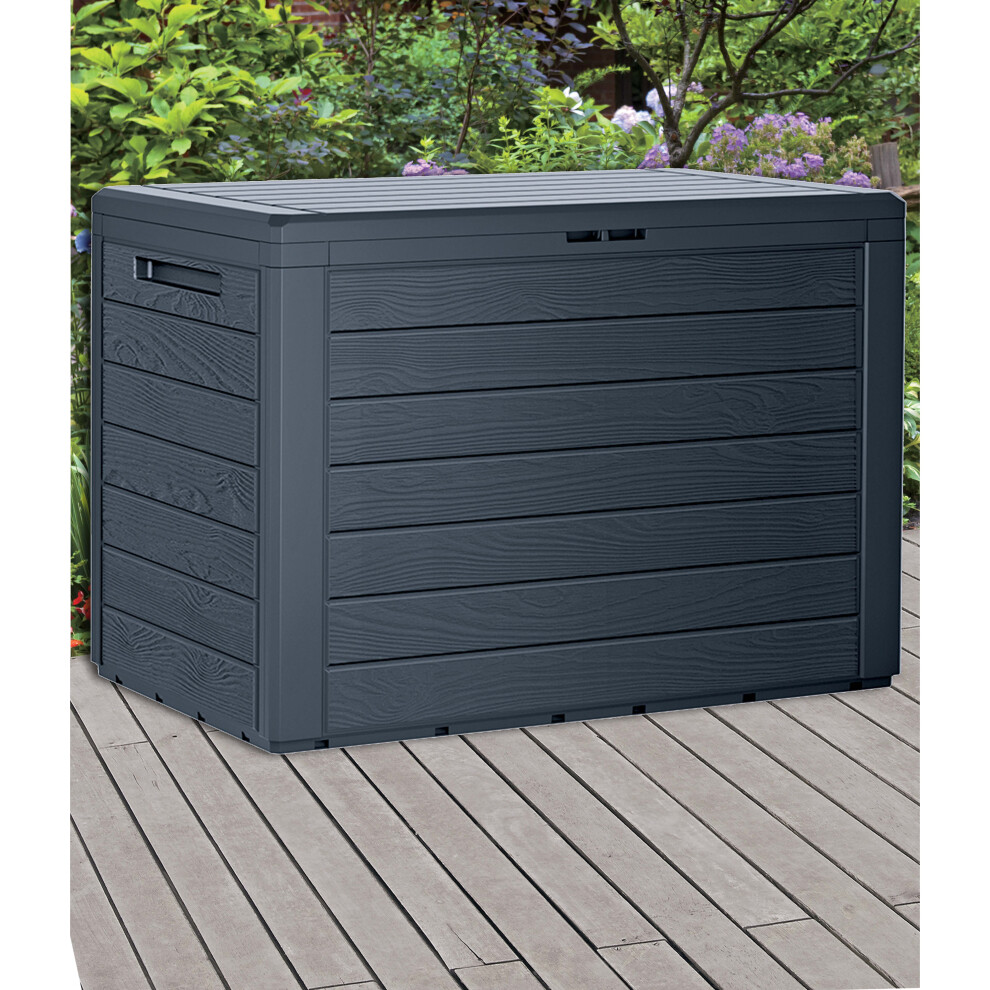 Anthracite 280L Plastic Storage Box Garden Outdoor Shed Utility Cushion Chest