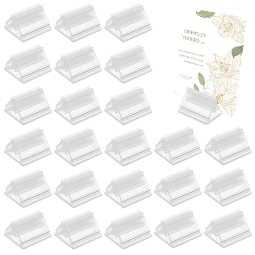BLMHTWO 24 Pcs Card Stands Acrylic Card Stands Table Sign Holder Stand Card Display Place Cards Holders Table Menu Holders Small Clear Plastic Display Stands for Wedding Photos Memos Pictures Display