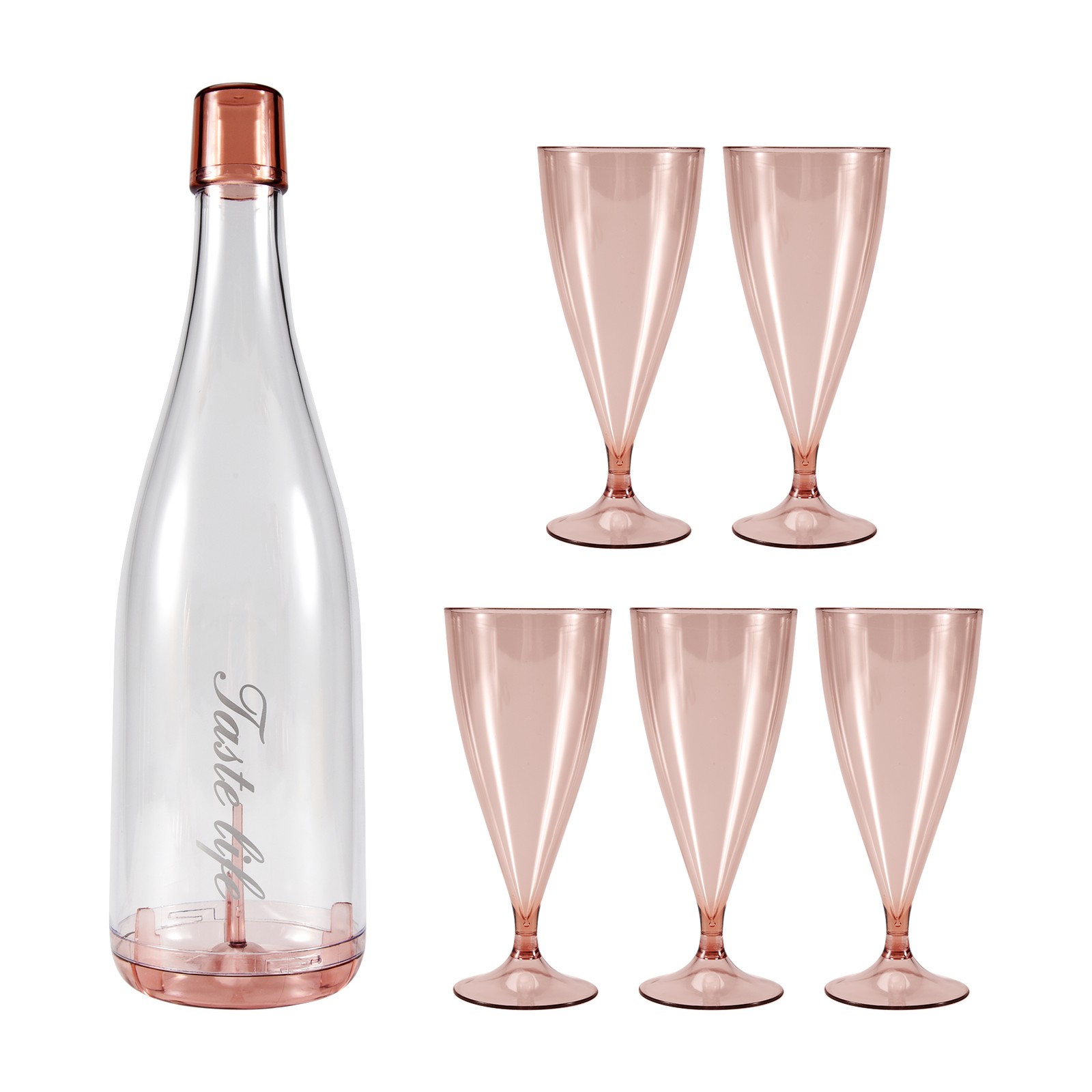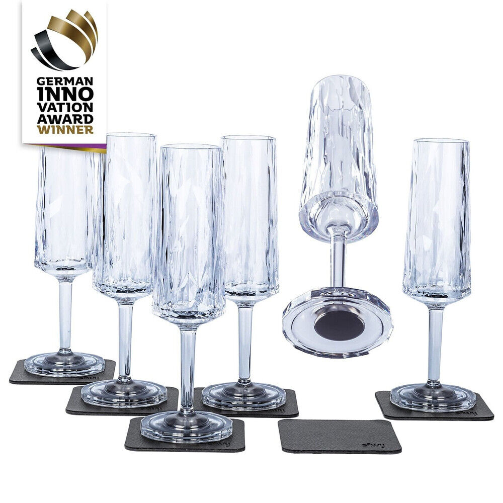 Silwy Magnetic Plastic Champagne Prosecco Glasses & Nano-gel Coasters - Set of 6