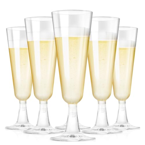 KOOSREEL Plastic Champagne Flutes, 50 Pack 5Oz/150ml Clear Plastic Champagne Glasses Cocktail Glasses Prosecco Glasses for Party,Birthday,Wedding,Chrismas,Thanksgiving, Transprent