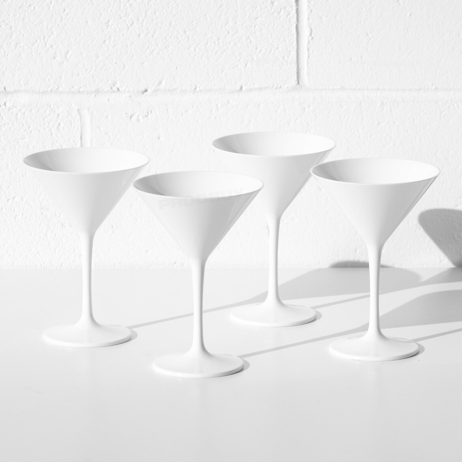 Set of 4 White Plastic Martini Cocktail Glasses Wine Champagne Saucers Wedding