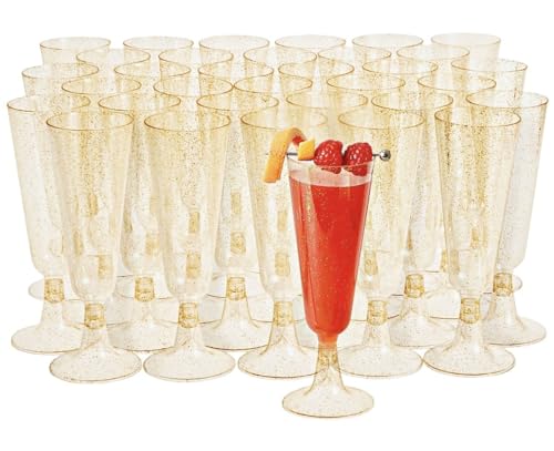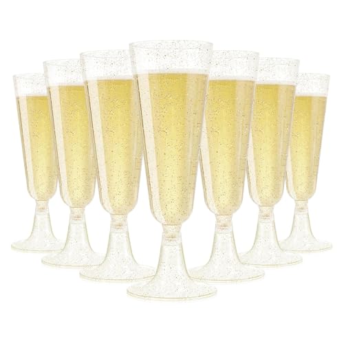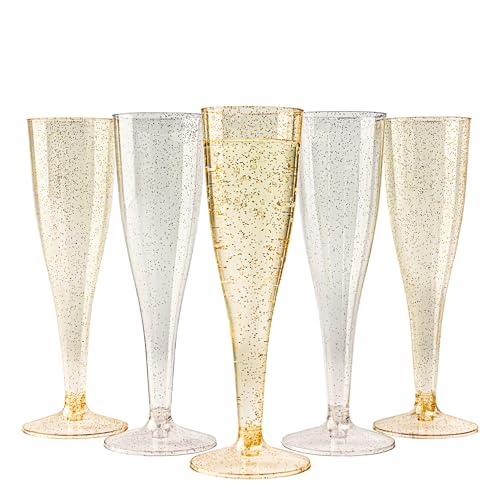 HIYAA Plastic Champagne Flutes, 50 Pack 5Oz/150ml Gold Glitter Plastic Champagne Glasses Prosecco Glasses Cocktail Glasses for Party,Birthday,Wedding,Chrismas,Thanksgiving