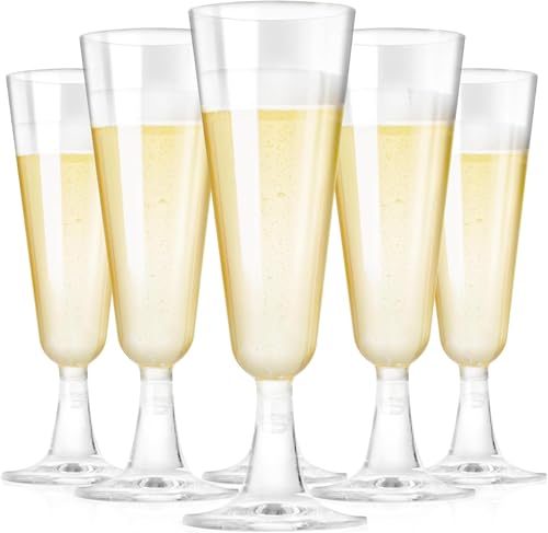 JMIATRY 100 Pcs Multi-Use Champagne Flutes, 160ml/5.6oz Plastic Champagne Flute, Clear Champagne Glasses Great for Wedding, Christmas, Birthday Party and Daily Use