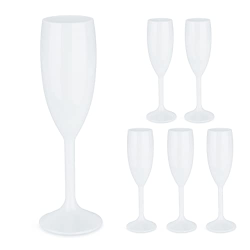 Relaxdays, Plastic Champagne Flutes, Set of 6, Shatterproof, BPA Free, 160 ml, Reusable Wine Glasses, for Parties, White, 22 x 6 x 6 cm