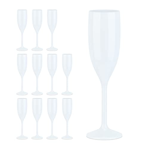 Relaxdays, Plastic Champagne Flutes, Set of 12, Shatterproof, BPA Free, Reusable Wine Glasses, for Weddings, White