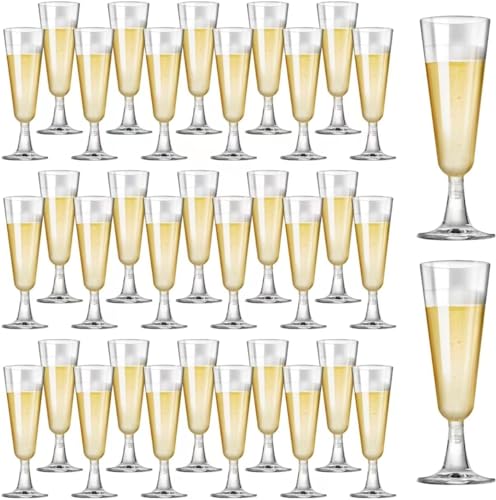 Gikisla 36 Pcs Plastic Champagne Flutes, 150ml Clear Champagne Glasses, Reusable Crystal Wine Cocktail Cups Perfect for Wedding Toasting Flutes Party