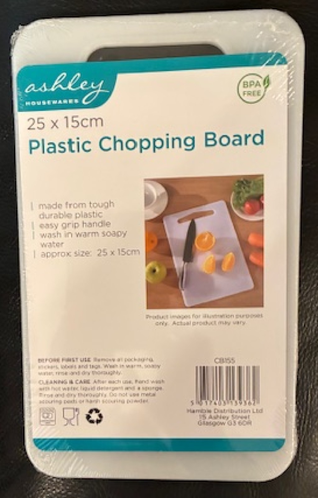 ASHLEY PLASTIC CHOPPING BOARD - BPA FREE - 25 X 15CM - WHITE - KITCHEN / FOOD