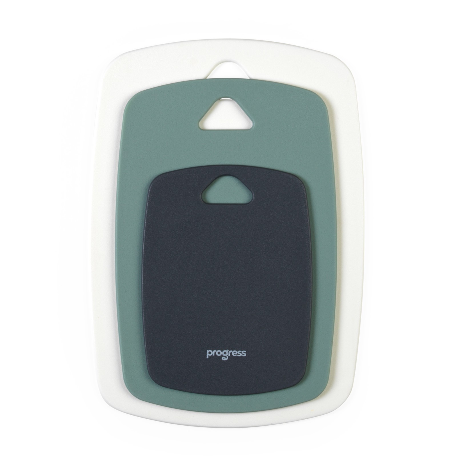 Progress 3-Piece Plastic Chopping Board Set – Multi-Size, Grey, Green & White