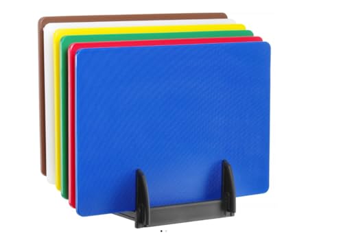 BAKI Professional Cutting Board for Kitchen/Restaurant, 45x30x1.1 cm Color-Coded(Set of 6) Plastic Chopping Board with and Without Rack (with Rack)