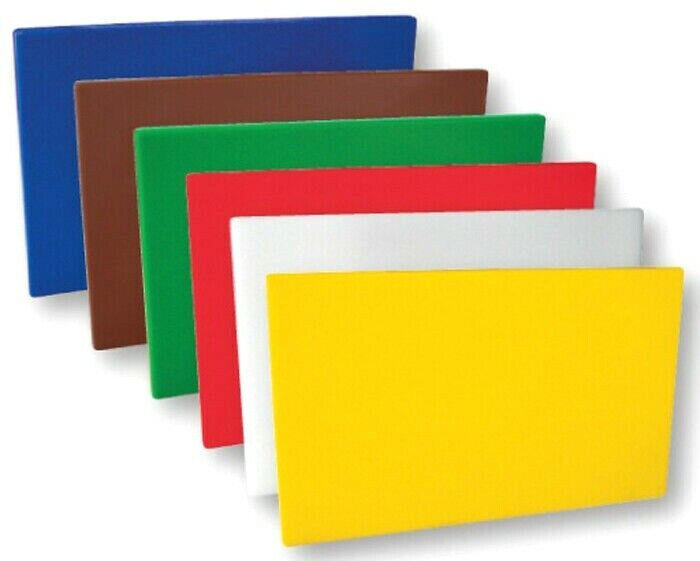 SET 6 PLASTIC COLOURED CATER CHOPPING BOARD SHRINK-WRAPPED 18X12X0.5" 45X30X1CM