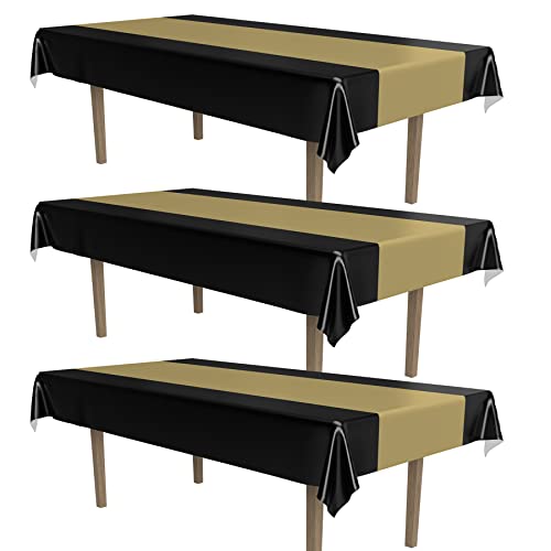 Beistle Black & Gold Striped Tablecovers, 54” x 108”, 3 Pieces – Plastic Table Cloth, Rectangular Tablecloth, Table Covers for Party, Graduation Tablecloth, Awards Night Decorations