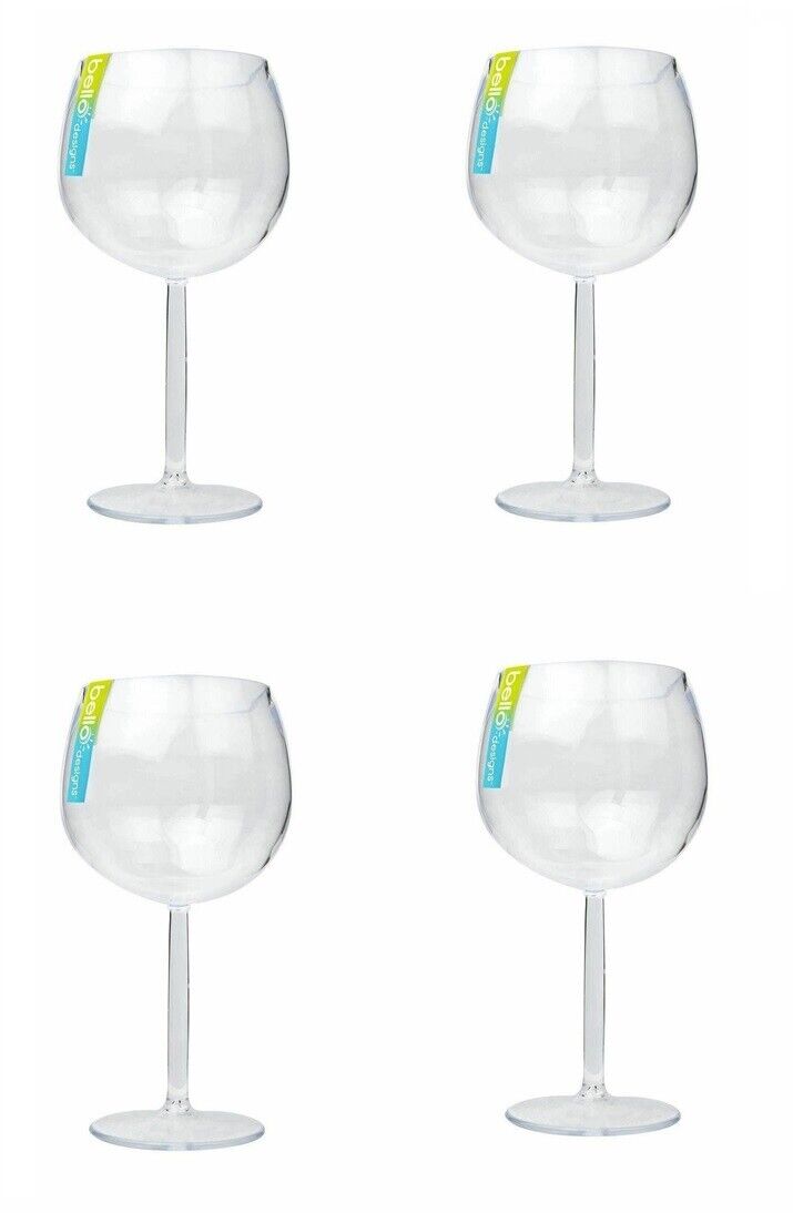 4 Plastic Gin Glasses Cocktail Balloon Clear Large 600ml Capacity Reusable Glass