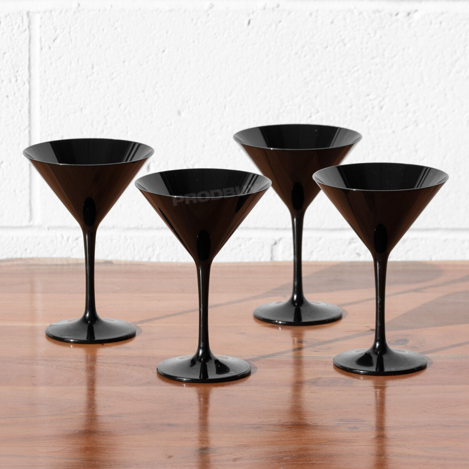 Set of 4 Black Plastic Martini Cocktail Glasses Wine Champagne Saucers Wedding