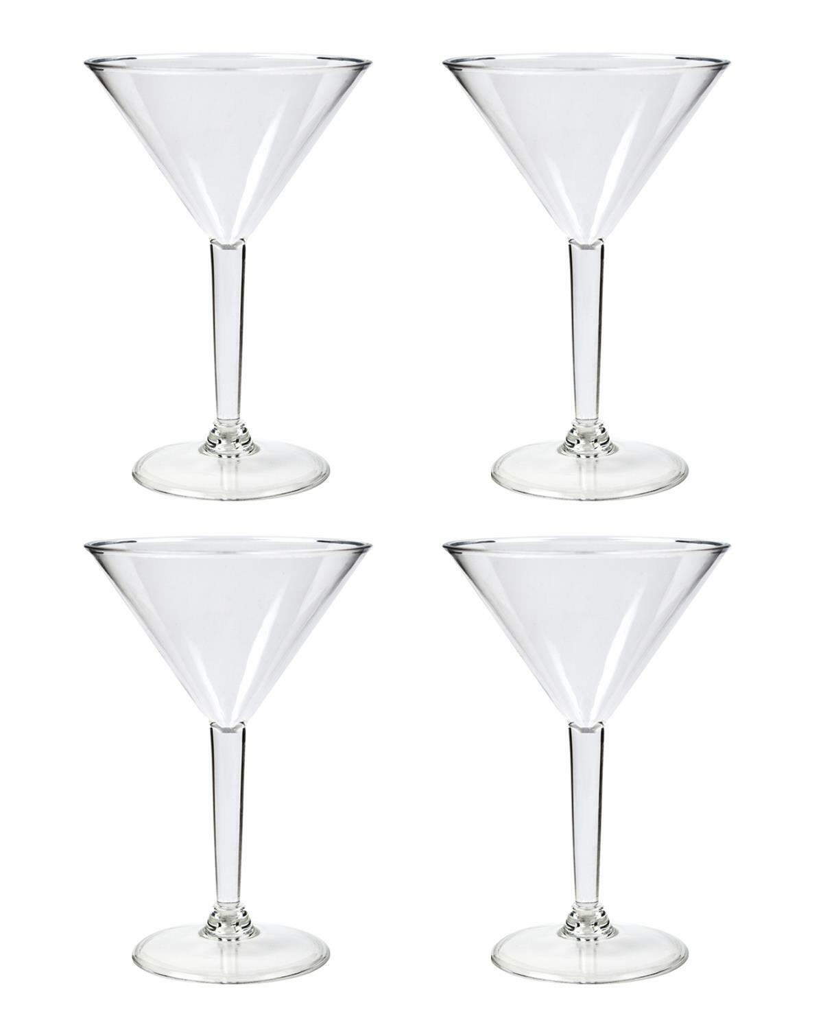 4x Martini Cocktail Glasses Set Clear Reusable Plastic Cup Summer Party Picnic