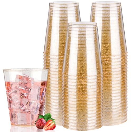 Goodluck 50PCS Gold Glitter Plastic Cups,10oz Reusable Gold Party Cups, Elegant Plastic Cocktail Glasses, Fancy Party Cups for Wedding, Birthday, Holiday