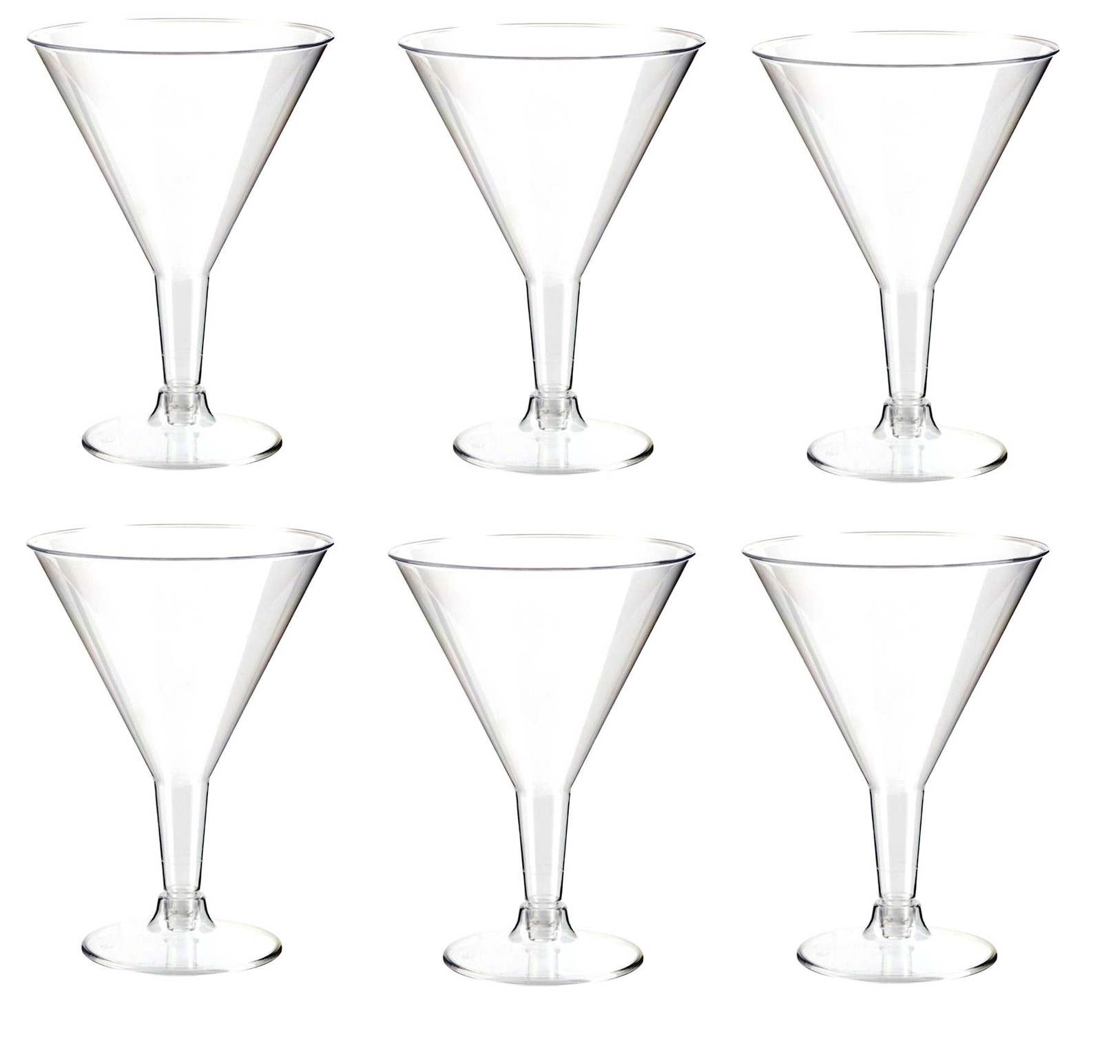 6 x Plastic Martini Glasses Clear Cocktail Drinking Party Glass 200ml 20cl