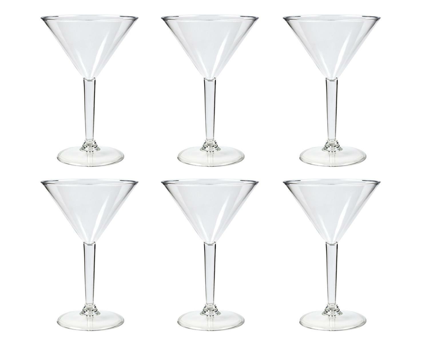 6x Martini Cocktail Glasses Set Clear Reusable Plastic Cup Summer Party Picnic
