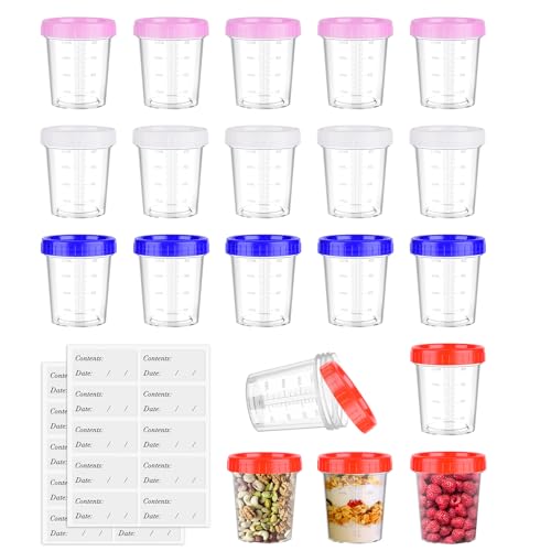 Mispudin 20Pcs Small Food Containers With Lids, 120ml 4oz Snack Pots with Lids & Date Stickers, Reusable Leakproof Airtight Small Plastic Containers for Food, Meal Prep, Sauce, Snack, Deli