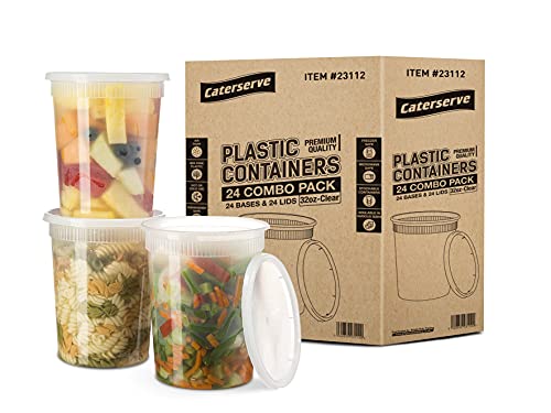 Caterserve Plastic Containers with Lids - Food Storage Container Set For Meal Prep - Reusable and Leakproof,Microwave and Freezer Safe Food Storage Tubs (32oz-24 Pcs)
