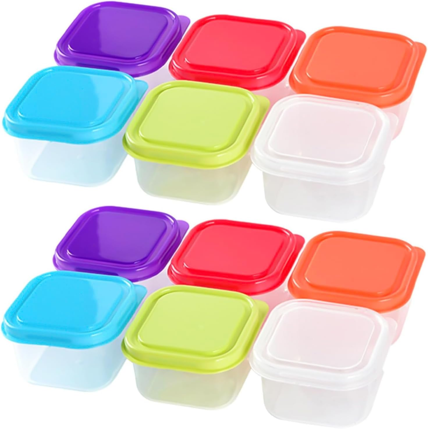 12 PCS Small Plastic Containers with Lids Food Storage Pots 6 Colors for Baby Ki