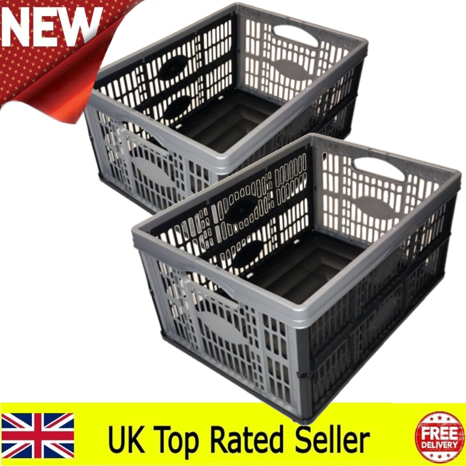 Pack of 2/3/4/5/6/7/8/10 Plastic Folding Storage Crate Box 32Lt Stackable (2 Crates Foldable Racks)