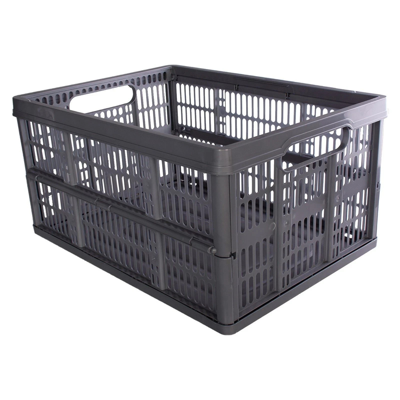 Large 32 Litre Collapsible Plastic Storage Crate Box 48cm Stackable Garage Car