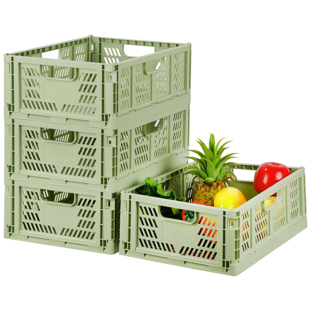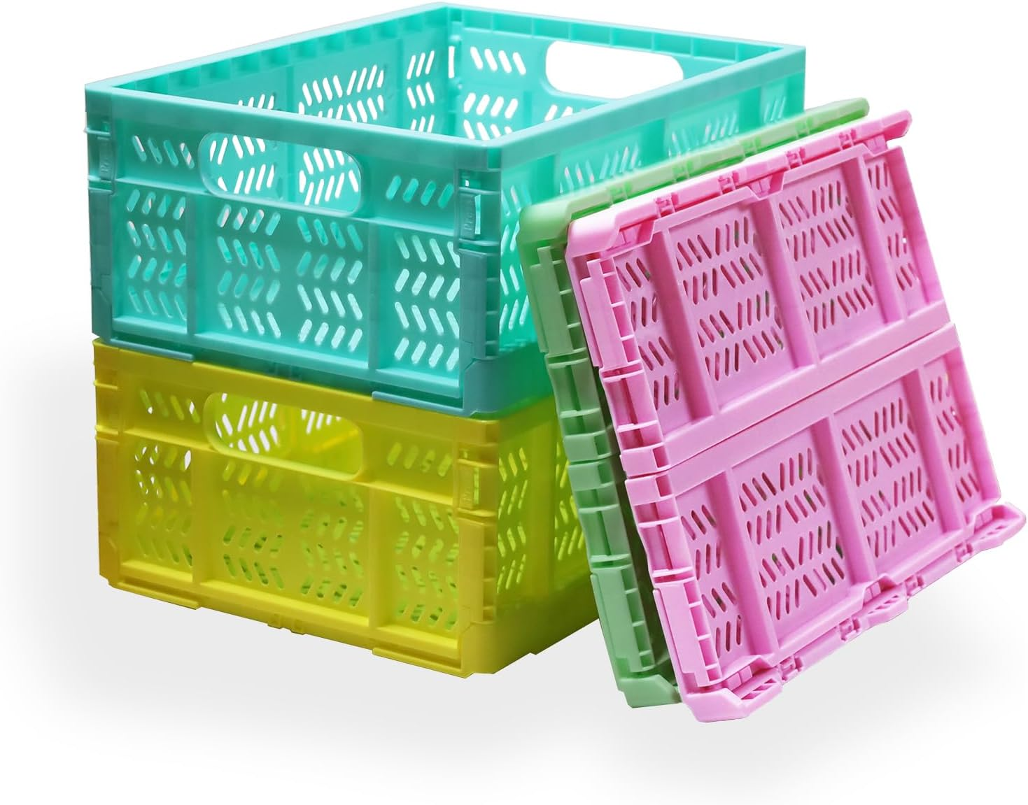 Foldable Plastic Storage Crates, Collapsible Stackable Bins Portable Baskets with Handle, Folding Containers for Office Kitchen Bedroom Bathroom