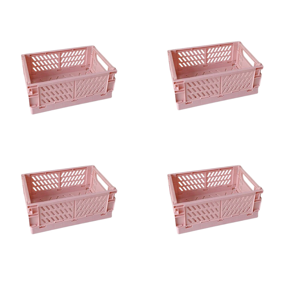 4 Pack Plastic Storage Crates Foldable Shelf Storage Basket Bins for Food Fruit Vegetables Snacks Toys Toiletries, Home Kitchen Office Storage Box