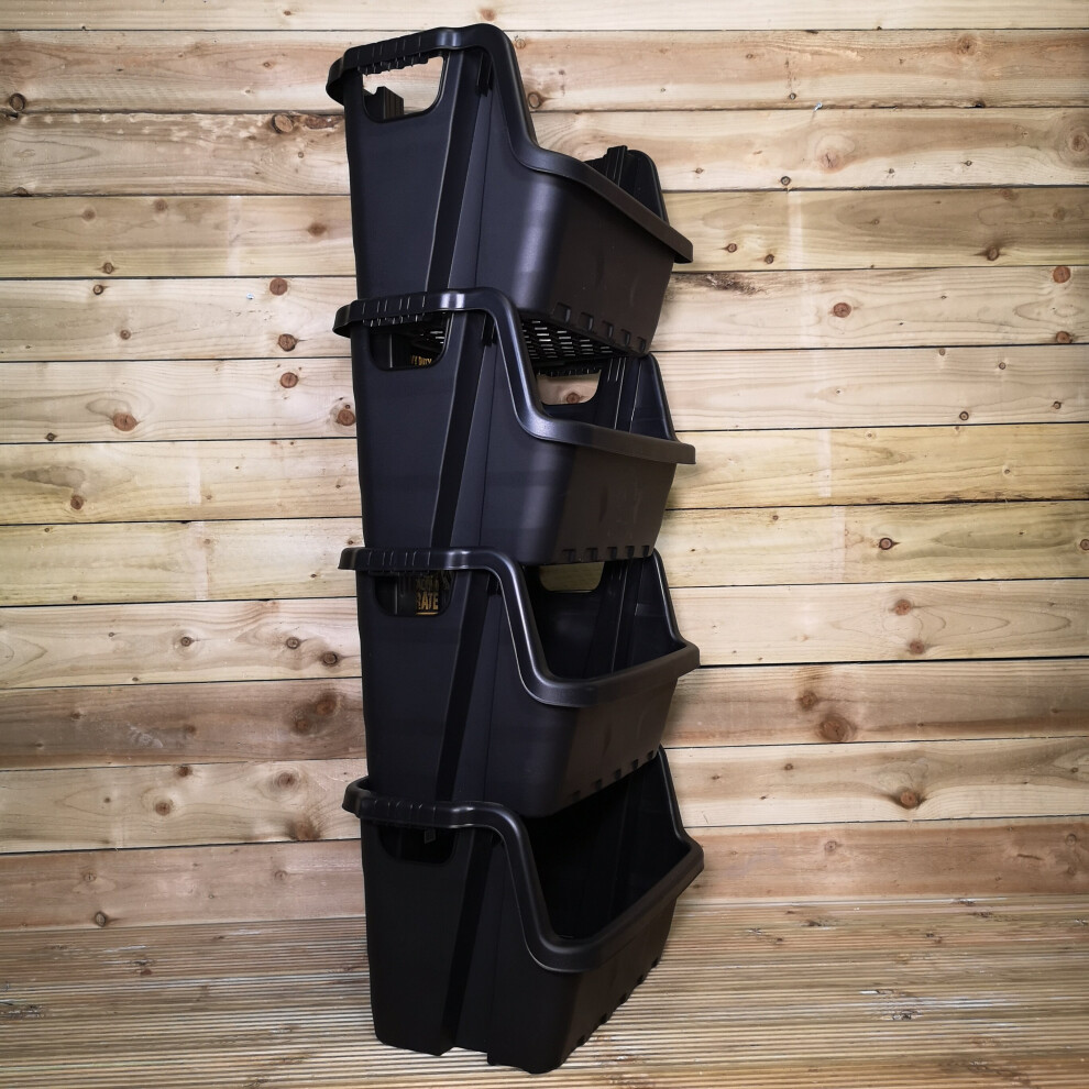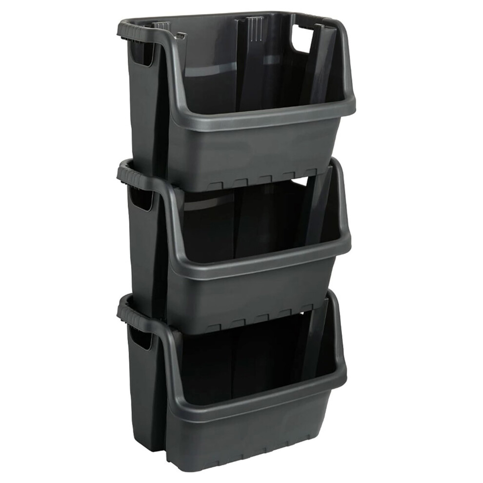 3 x Large Black Open Fronted Black Plastic Stacking Crates