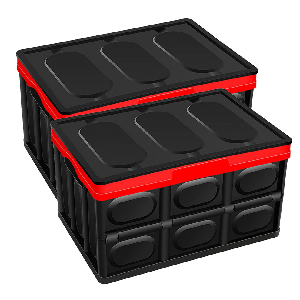 Collapsible Storage Box with Lids 2Pack Folding Bin Crates Plastic Stack Foldable Organizer For Home Car Boot Black