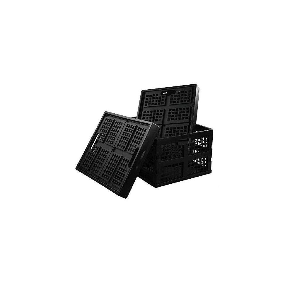 16L Plastic Collapsible Storage Crates,Folding Crates Storage,Pack of 4,Black