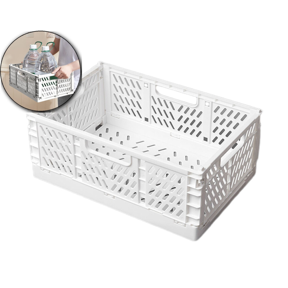 Spesh 2 Pcs Collapsible Crates Storage Boxes Plastic Foldable Crates Stackable Storage Baskets for Home Kitchen Office(White, 38x28x23cm)