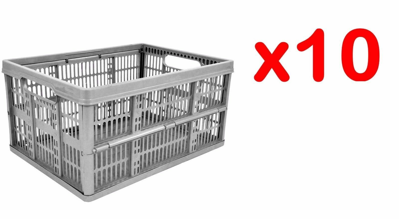 10X Folding Crates Grey Plastic Storage Crates Basket Collapsible Stackable Box
