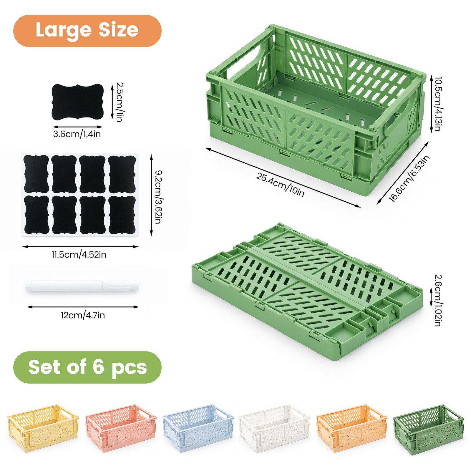 6 Pack Foldable Plastic Storage Crates with Labels Pastel Organizers