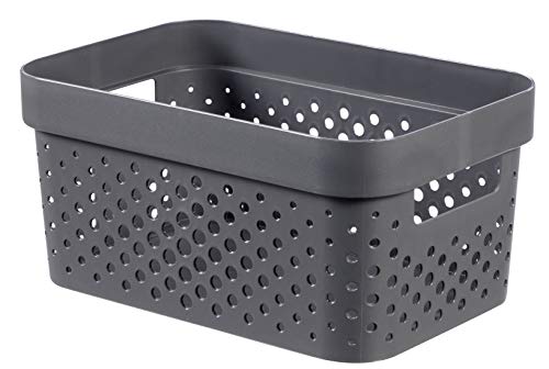 Curver Infinity Tray 4.5 L Dots Recycled Plastic Pink Crates, anthracite grey, S